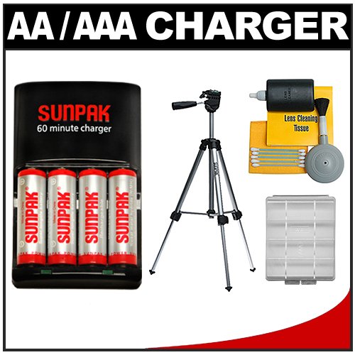 Sunpak PicturesPlus (4) 2650mAh AA NiMH Batteries & 60 Minute Charger with Precision Design AA Battery Case for Fuji Finepix Digital Cameras + Tripod + Cleaning Accessory Kit Review